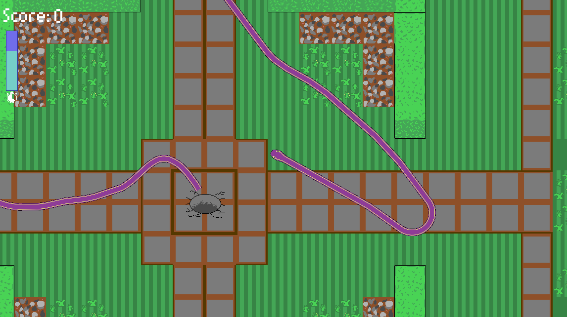 You are a magical purple snake who likes to go around the park at night to explore, run around, and eat delicious treats. Your goal is to get as many points as possible by slithering in large loops around the map without running into yourself. While you're at it, you can eat tasty treats found out in the map, but if you hit yourself on a run when you ate them, you lose those points you were going to get, and the treats will not return. Try to eat and run in this fast-paced slithering experience.